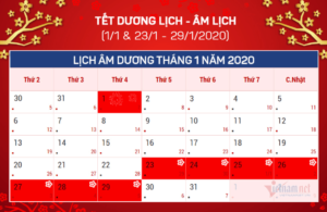 Lịch Nghỉ Tết Nguyên Đán & các ngày Lễ lớn năm 2020